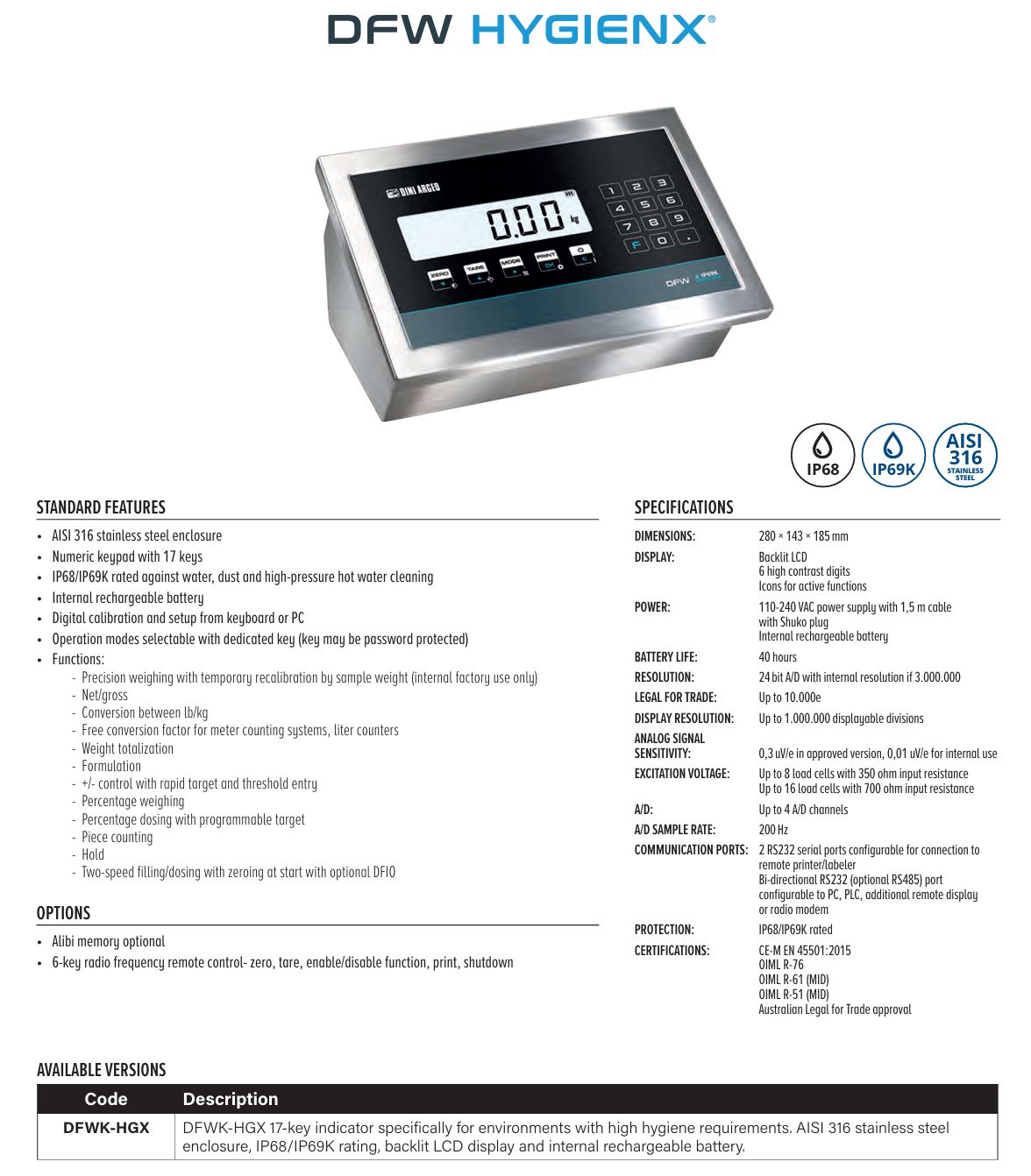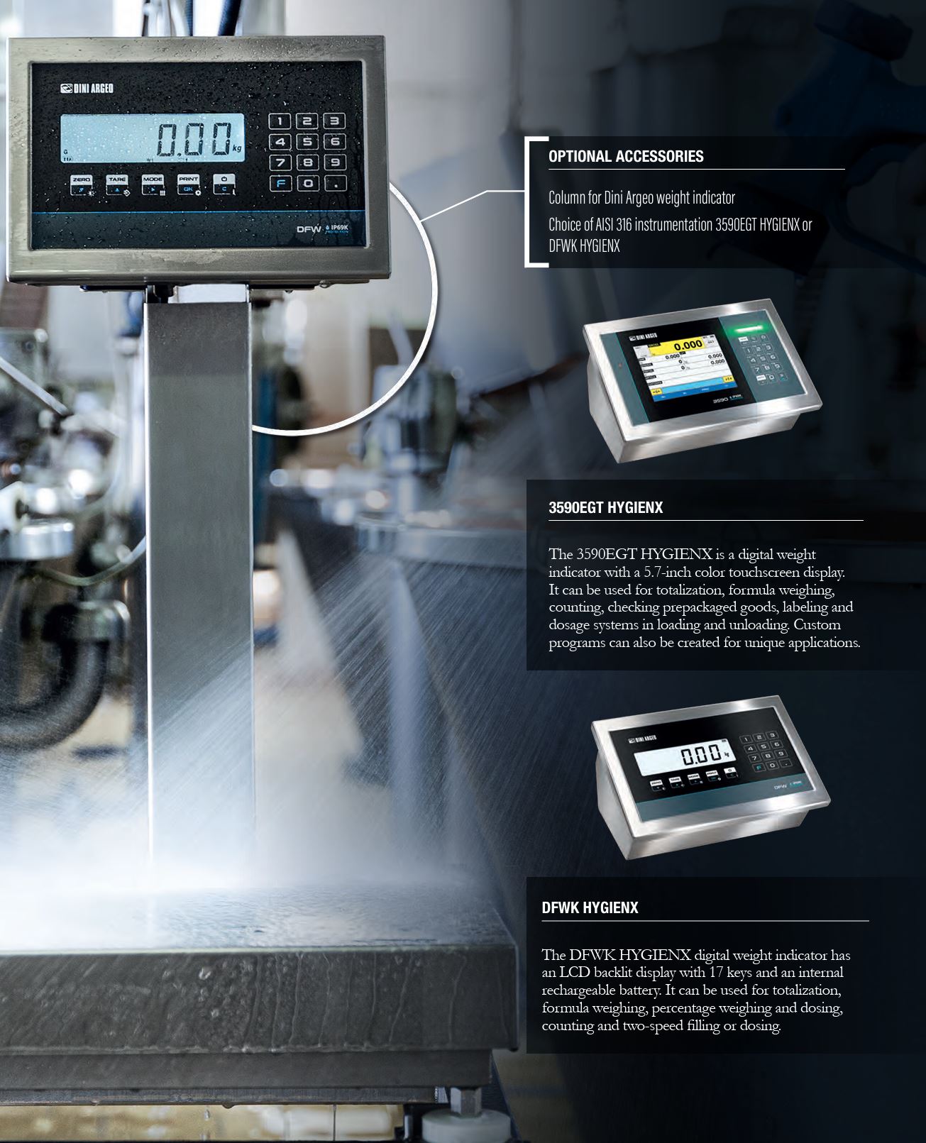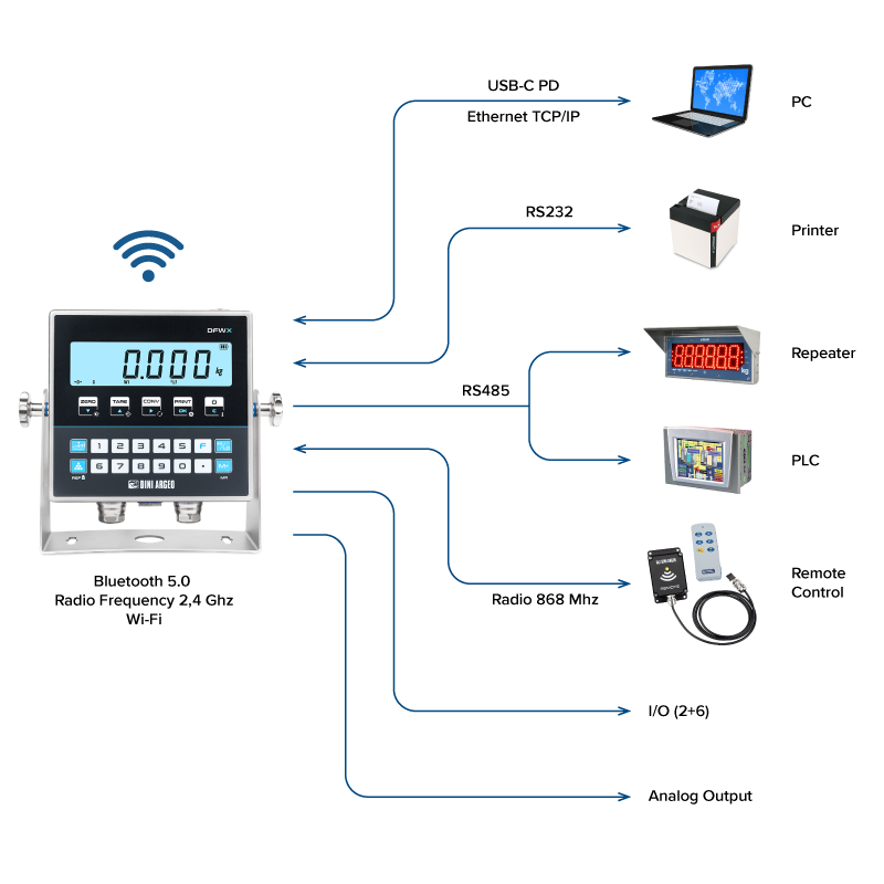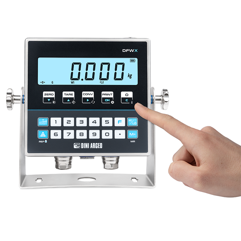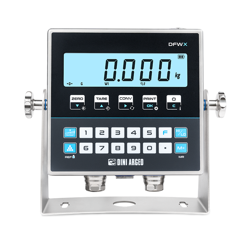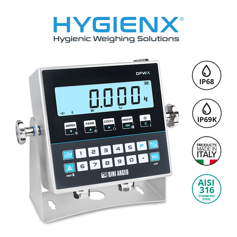 AISI 316 stainless steel weight indicator with IP68 and IP69K protection, ideal for environments with high hygiene standards, designed to simplify cleaning and sanitization. Compact and rugged, featuring an interactive RGB backlit display. Multiple connectivity options make it a versatile weight indicator suitable for advanced industrial applications.
