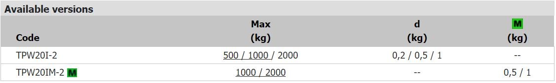 • 1000/2000kg x 0.2/0.5kg